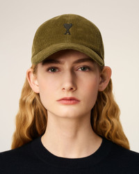 Cap in cotton corduroy velvet. Unisex product Corduroy velvet "ami" signature adjustment buckle Ami Paris signature eyelets Cotton lining Black Ami de Coeur satin stitch embroidery Adjustable cap on the back, one size only Made in Bulgaria (with love) REF: UCP265.CO0089.298 SIZE & FIT One size. COMPOSITION & CARE GUIDE Main Material : 100% Cotton Do not wash Chlorine prohibited Do not tumble dry Do not iron Dry clean possible