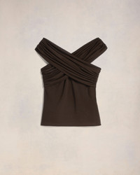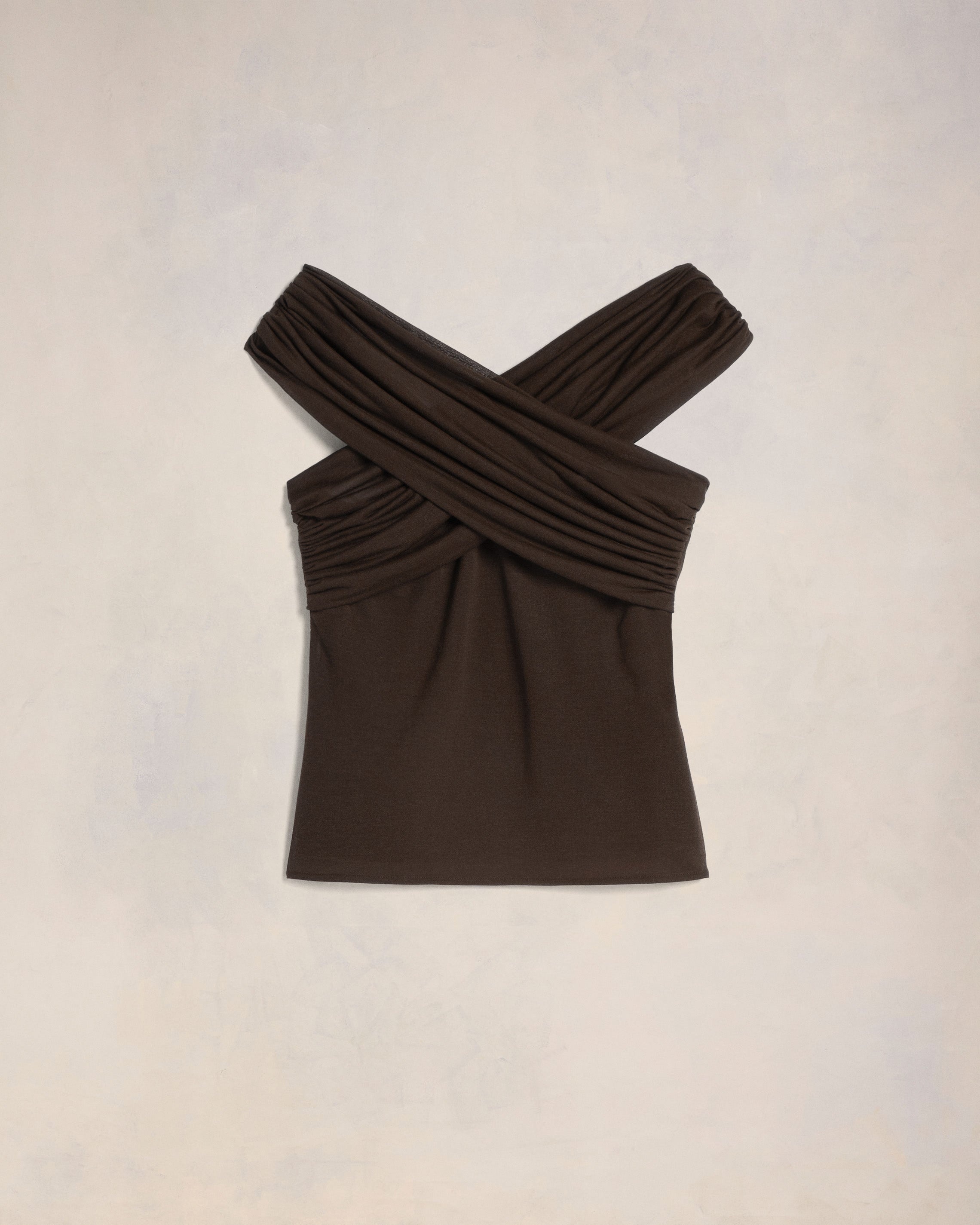 Draped top in light and fluid jersey. 34 cm center back length (size 36) Double layer jersey on body Crossed draped jersey on front of top Made in Portugal (with love) REF : FTP041.JE0070.221 SIZE & FIT This item is designed for a close fit. Take the next size up for a semi-fitted cut. Model is 1m78 / 5'10" and is wearing a size 36. COMPOSITION & CARE GUIDE 70% Cotton, 30% Polyamide Chlorine prohibited Do not tumble dry Do not dry clean Cool iron Hand wash low temperature