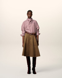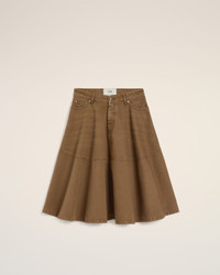 Midi skirt in colored cotton twill. Low rise Zipped fly Denim metal rivets and buttons in nickel color "ami alexandre mattiussi" patch on the back 65 cm middle back length (size 36) Made in Portugal (with love) REF: FSK436.DE0112.216 SIZE & FIT Fits true to size. Take your normal size. Model is 177 cm / 5"9 and is wearing a size 26. COMPOSITION & CARE GUIDE Main Material : 100% Cotton Pocket Lining : 65% Polyester 35% Cotton Machine wash at 30°c Chlorine prohibited Do not tumble dry Medium iron Dry clean possible Wash inside out Wash with similar colours