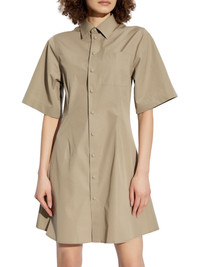 cotton shirt dress Highlights - Sand beige - Front press-stud fastening - Chest patch pocket - Cutaway collar - Short sleeves Imported Composition Cotton 100%