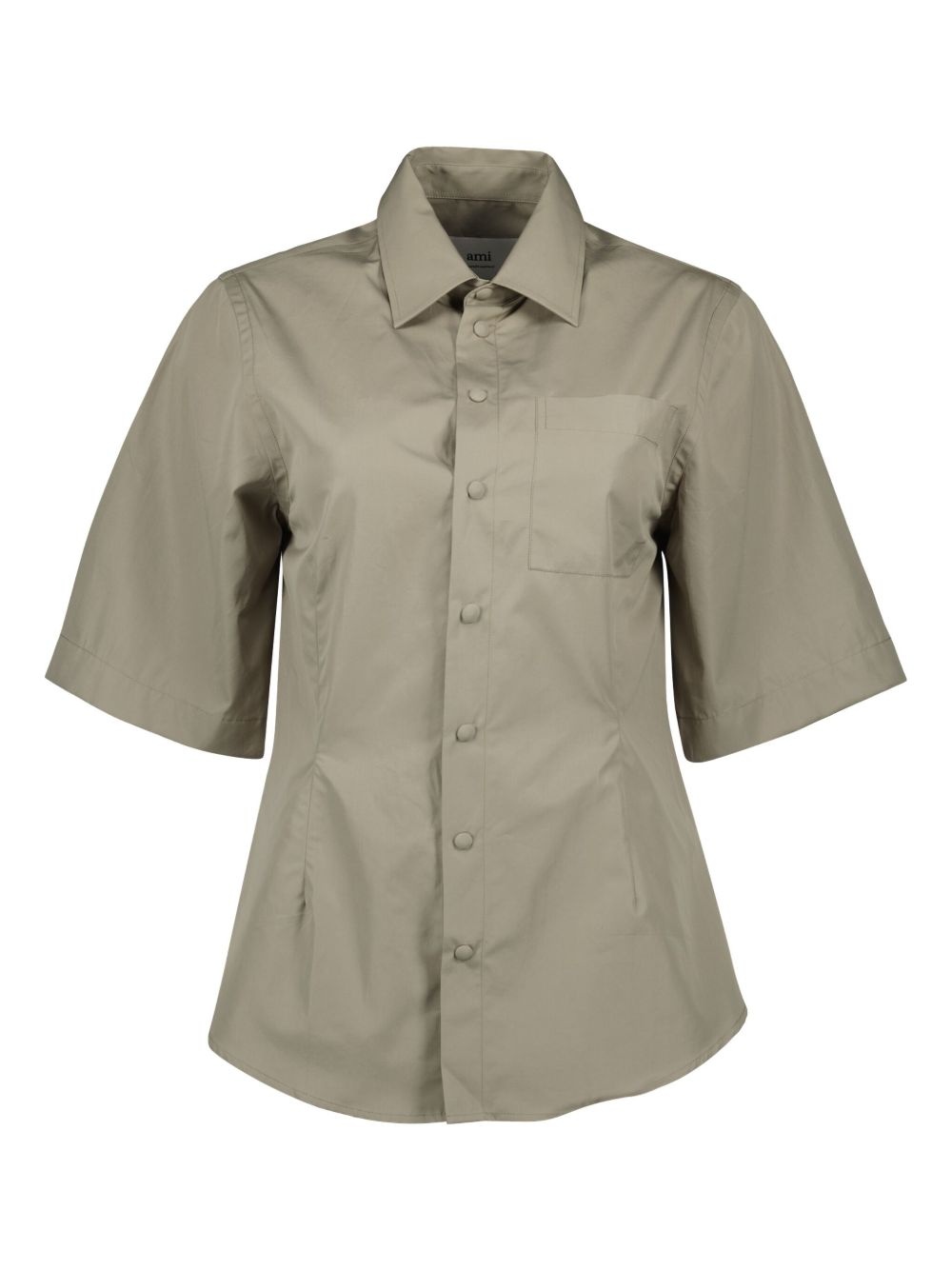 cotton shirt Highlights - Sage green - Front button fastening - Spread collar - Chest patch pocket - Short sleeves Imported Composition Cotton 100% Washing instructions Read Manufacturer Guidelines