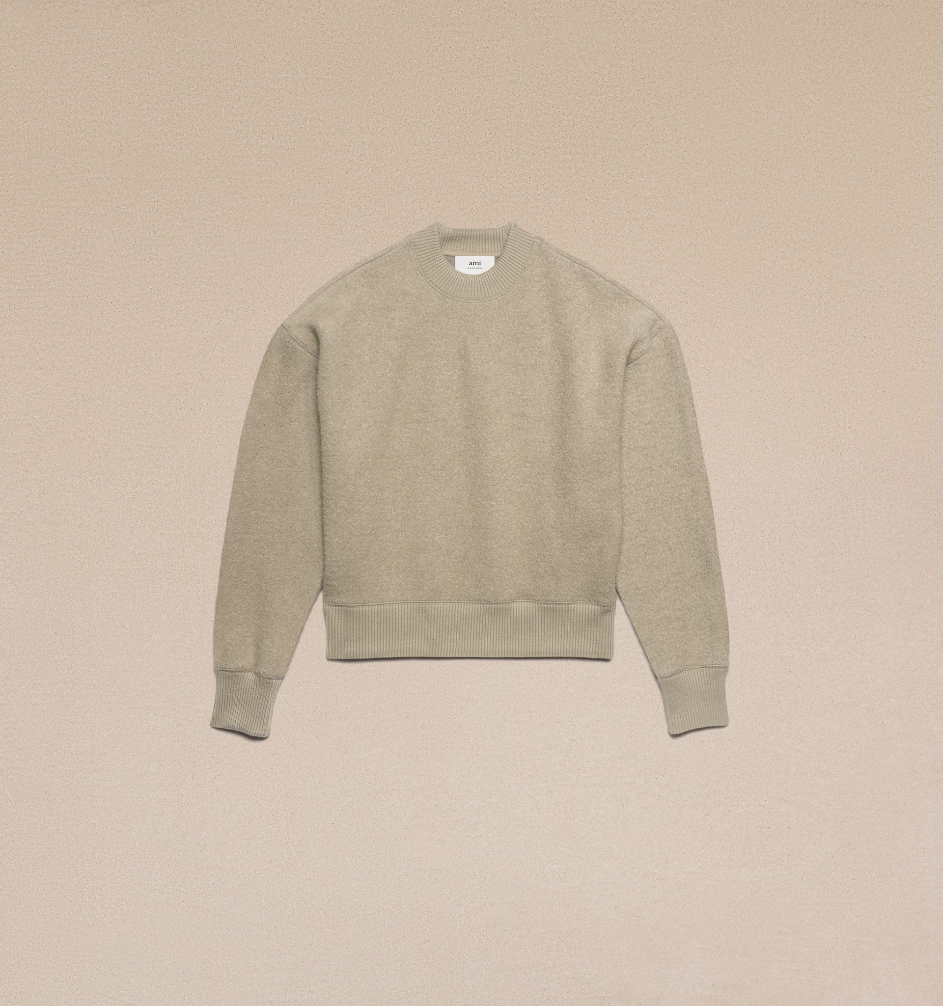 Product Description crew-neck fleece sweatshirt from AMI Paris featuring taupe brown, wool blend, fleece texture, crew neck, drop shoulder, long sleeves, ribbed trim and straight hem. When buying this unisex item, keep in mind that it is graded in standard men's sizing.. Crew neck Sweatshirt in boiled wool. - Boxy fit - 72 cm center back length (size M) - 68 cm center back length (size XS) - Made in Portugal (with love) REF USW021.JE0039263 Size & Fit This style is unisex. For man, take your normal size. For woman, take one size down than your usual size. Man model is 1m80 / 5'11" and is wearing a size M. Woman model is 1m80 / 5'11" and is wearing a size XS. Materials & Care Instructions 93% Wool, 7% Polyamide Hand wash low temperature Chlorine prohibited Do not tumble dry Cool iron Do not dry clean Find out more about product traceability.