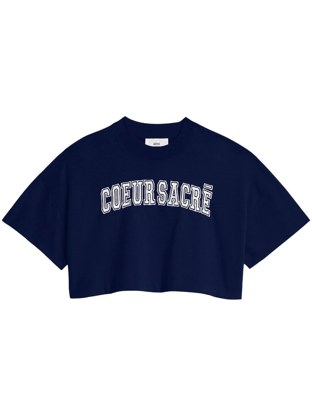 logo-print cropped T-shirt Highlights - Navy blue - Logo print to the front - Crew neck - Short sleeves - Cropped - Straight hem Imported Composition Cotton 100%