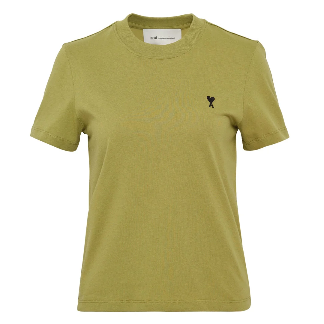 600079425GRN00L / SS26-FTS347.724/00/A035 - Cropped length silhouette - Contrasting ribbed crew neckline - Short sleeves with contrasting cuffs - Embroidered heart logo detail - Premium cotton construction - Relaxed fit AMI Cropped Contrasted ADC T-Shirt delivers Parisian streetwear with contemporary cropped silhouette and signature logo detailing. Crafted from soft premium cotton in olive green with contrasting ribbed neckline and sleeve cuffs. The embroidered heart logo adds the brand's playful French aesthetic to this relaxed-fit essential.