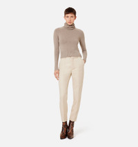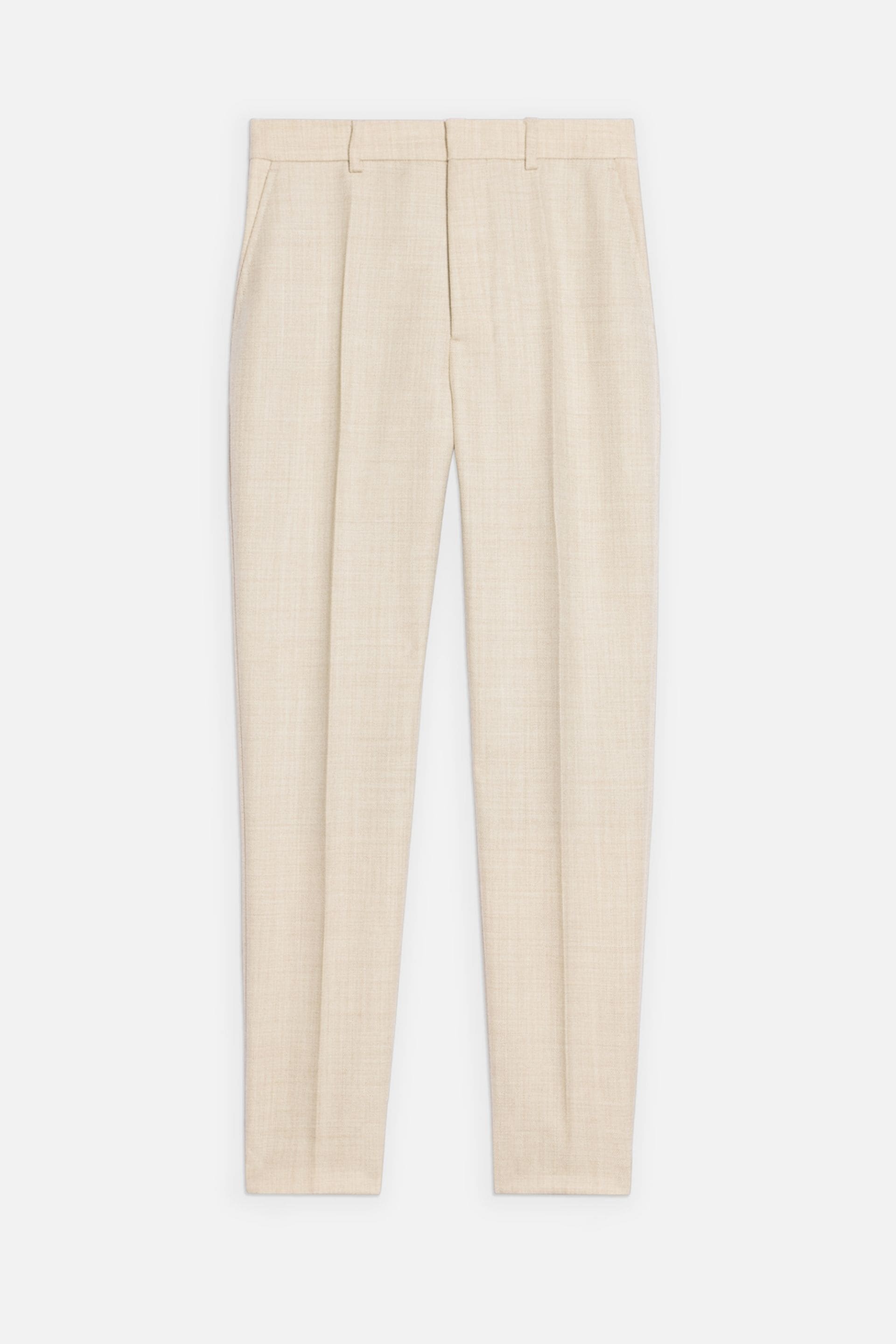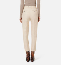 Product Description Beige wool cropped tailored trousers from AMI Paris featuring high waist, concealed front fastening, belt loops, pressed crease, tailored cut, cropped leg, two side slit pockets and two rear welt pockets. Trousers in wool gabardine. - Cigarette fit - 16cm bottom leg width (size 36) - Front lining to knees - Zipped fly - ami logo rocap waistband - ami engraved black horn buttons REF FTR004.285250 Size & Fit Fits true to size. Take your normal size. Materials & Care Instructions DO NOT WASH, DO NOT BLEACH, DO NOT TUMBLE DRY, COOL IRON, DRY CLEAN GENTLE, CONTAINS NON-TEXTILE PARTS PF ANIMAL ORIGIN