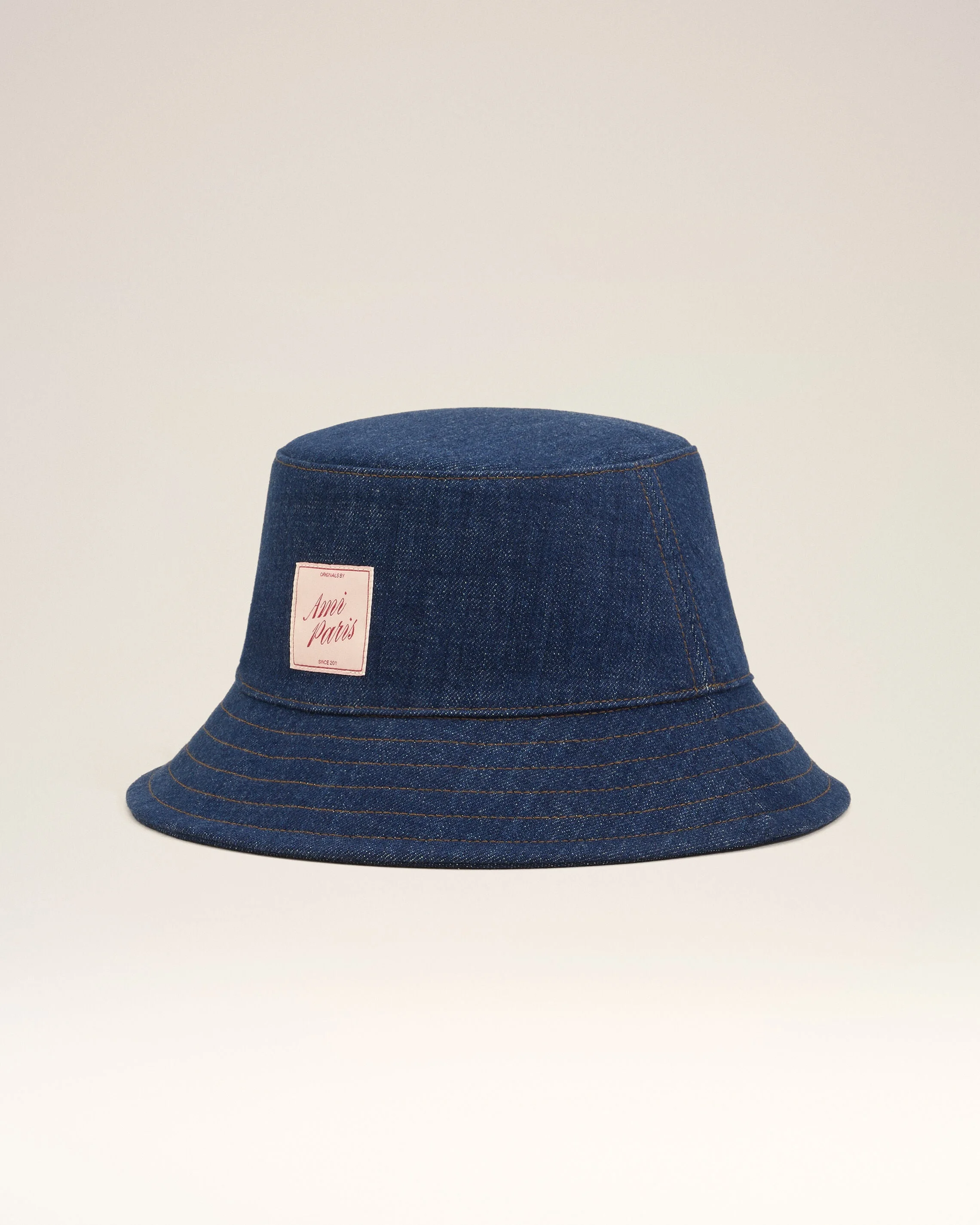 Denim ami paris label bucket hat. Unisex product Classic hat fit Visor: 6 cm Ami Paris Heritage label Made in Bulgaria (with love) REF: UHA684.DE0122.402 SIZE & FIT Fits true to size. Take your normal size. COMPOSITION & CARE GUIDE Main Material : 100% Cotton Main Lining : 100% Cotton Do Not Wash Chlorine Prohibited Do Not Tumble Dry Do Not Iron Do Not Dry Clean