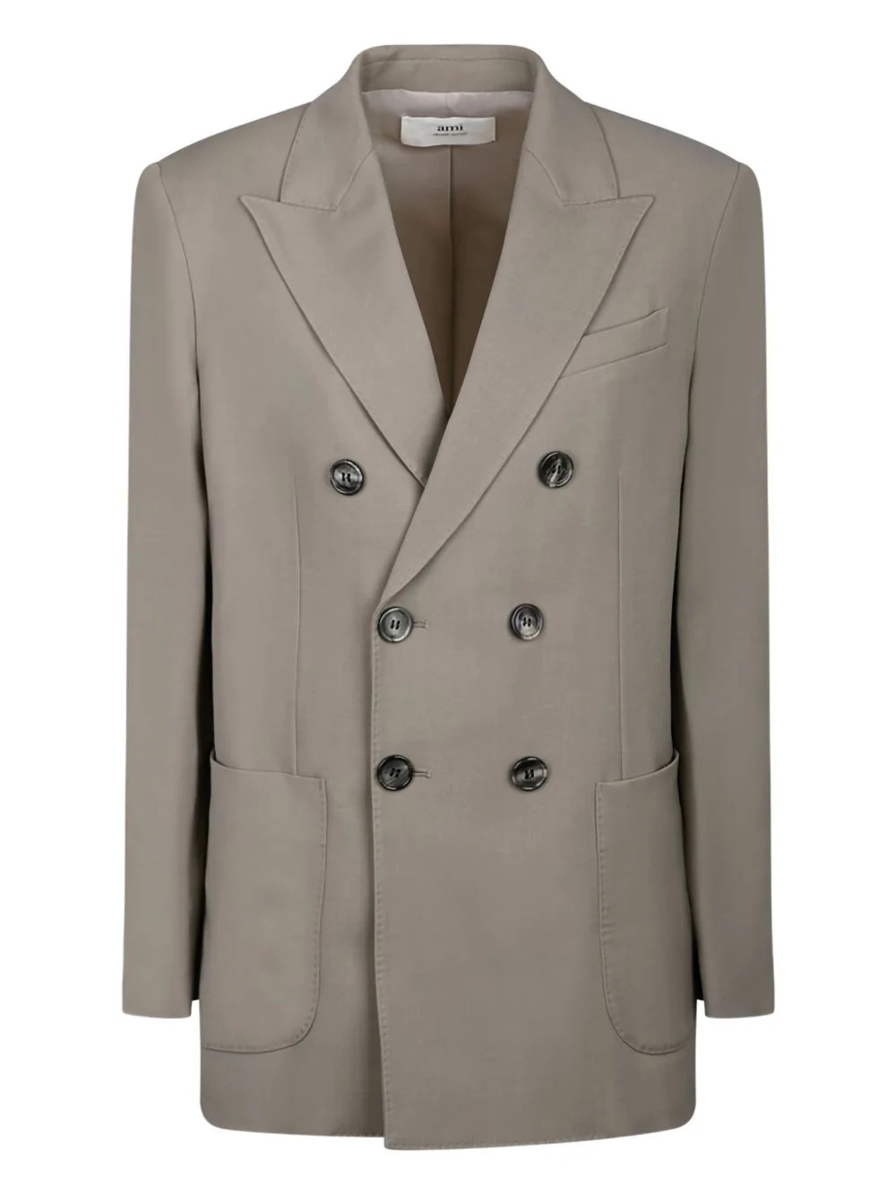 double-breasted blazer Highlights - Taupe brown - Peak lapels - Shoulder pads - Long sleeves with buttoned cuffs - Chest welt pocket - Two front patch pockets - American rear vent - Multiple internal slip pockets - Full lining - Double-breasted button fastening Imported Composition Outer: Viscose 55%, Virgin Wool 45% Lining: Cotton 50%, Polyester 50% SIZE & FIT Measurement CHEST 41.73 in(106 cm) LENGTH 29.92 in(76 cm) WAIST 40.94 in(104 cm) SLEEVE LENGTH 24.8 in(63 cm) HIPS 44.09 in(112 cm)