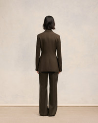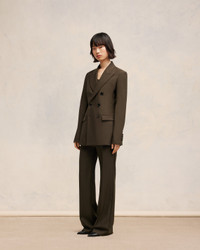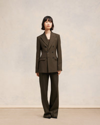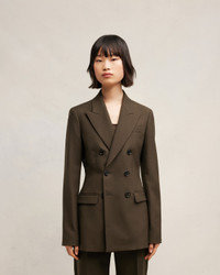 Double breasted jacket in soft wool gabardine. Regular fit 73 cm center back length (size 36) Lined Double breasted Peak collar Welt chest pocket Flap pockets Inside pockets Slit middle back Bottom sleeves buttoned Horn buttons Made in Romania (with love) REF : FBV217.WV0026.221 SIZE & FIT Fits true to size. Take your normal size. Model is 1m76 / 5'9" and is wearing a size 36. COMPOSITION & CARE GUIDE 50% Polyester, 50% Cotton Do not wash Chlorine prohibited Do not tumble dry Cool iron Dry clean petroleum solvent only on a gentle process