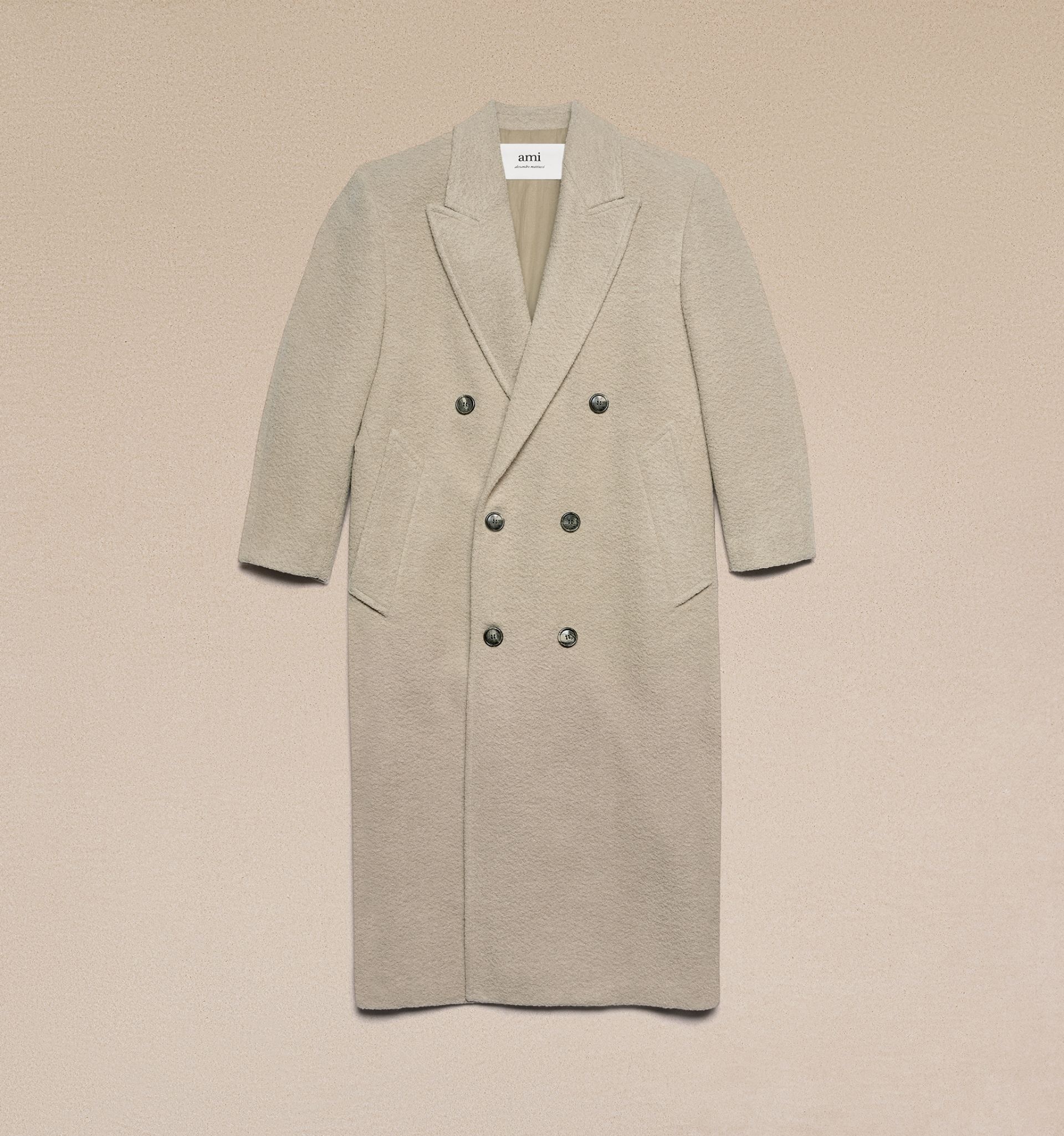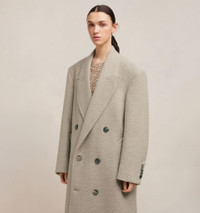 Product Description beige virgin wool blend textured finish peak lapels double-breasted button fastening long sleeves buttoned cuffs two side patch pockets straight hem Double breasted oversized coat in virgin wool and baby lama with boucle effect. - Oversized fit - 135 cm center back length (size 36) - Fully lined - Welt pockets - Back vent - Buttoned cuffs - Made in Moldavia (with love) REF FCO317.WV0025263 Size & Fit This item is designed to be worn lose. Take your normal size. Model is 1m79 / 5'9" and is wearing a size 36. Materials & Care Instructions 58% New Wool, 25% Bébé Lama, 6% Viscose, 6% Cotton, 5% Nylon Chlorine prohibited Do not tumble dry Dry clean gentle Cool iron Do not wash Find out more about product traceability.