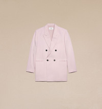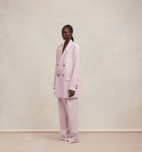 Product Description oversize double-breasted blazer from AMI Paris featuring light pink, wool, peak lapels, shoulder pads, long sleeves, buttoned cuffs, chest welt pocket, double-breasted button fastening, two front welt pockets, central rear vent and straight hem. Double breasted oversized jacket in wool gabardine. - Oversized fit - 85 cm center back length (size 36) - Fully lined - Chest welt pocket - Flap pockets - Buttoned cuffs - Made in Romania (with love) REF FBV311.WV0026679 Size & Fit This item is designed to be worn lose. Take your normal size. Model is 1m80 / 5'11" and is wearing a size 36. Materials & Care Instructions 100% New Wool Chlorine prohibited Do not tumble dry Dry clean gentle Cool iron Do not wash Find out more about product traceability.