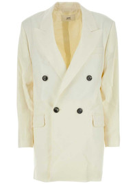 double-breasted blazer Highlights - Ivory white - Virgin wool - Wide peak lapels - Double-breasted button fastening - Long sleeves - Buttoned cuffs - Chest welt pocket - Two side flap pockets - Central rear vent Imported Composition Outer: Virgin Wool 100% Lining: Cotton 50%, Polyester 50% SIZE & FIT Measurement CHEST 40.94 in(104 cm) SLEEVE LENGTH 24.8 in(63 cm) LENGTH 33.85 in(86 cm) FittingInformation Designed to be unstructured, offering a loose fit throughout The internal shoulder pads offer a structured shape Made from a midweight non-stretch fabric This piece fits true to size – take your usual size Washing instructions Read Manufacturer Guidelines