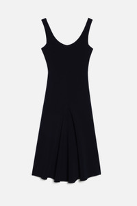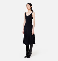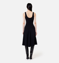 Product Description Black canvas sleeveless flared midi dress from AMI Paris featuring scoop neck, sleeveless, flared design, scoop back and concealed side zip fastening. Dress in viscose and elastane canvas. - Godets on the middle front and middle back - 92cm middle back length (size 36) - Fully lined - Zip closure on the left side when worn REF FDR210.273001 Size & Fit Fits true to size. Take your normal size. Materials & Care Instructions DO NOT WASH, DO NOT BLEACH, DO NOT TUMBLE DRY, COOL IRON, DRY CLEAN GENTLE