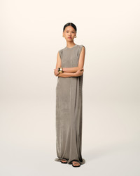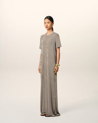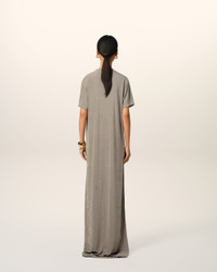 BEIGE RIB JERSEY SHORT SLEEVE LONG DRESS