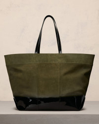 Maxi East West Shopping bag in gradient patent and suede leather. Linen canvas lining ami alexandre mattiussi lettering in metal Inside zipped flying pocket Patent leather handles, shoulder carry Metal hardware in vibrated silver color Size: 45x45x22.5 cm, length at the top 78 cm Made in Morocco (with love) REF : ULL505.AL0060.364 SIZE & FIT One size. COMPOSITION & CARE GUIDE 100% Calfskin Our leathergoods are made from delicate materials. To keep the original aspect of the leather as long as possible, please avoid contact with abrasive and oily substances. Make sure not to expose them at the direct light for too long and to wipe them with a soft and dry cloth when wet. To avoid deformations, insure to not overload them. Keep them in their dust bag and safe from humidity.