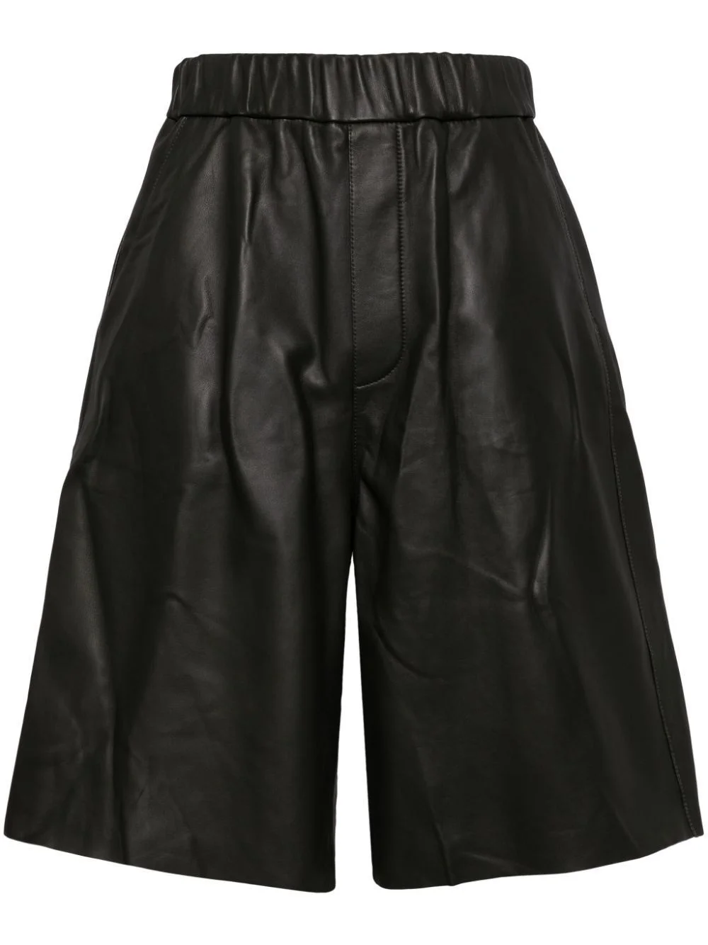 leather bermuda shorts Highlights - Black - Lambskin - Grained texture - Signature ami de coeur monogram motif - Elasticated waistband - Two side slash pockets - Two rear patch pockets - Knee-length - When buying this unisex item, keep in mind that it is graded in standard men's sizing. Imported Composition Lining: Polyester 50%, Cotton 50% Outer: Lambskin 100%