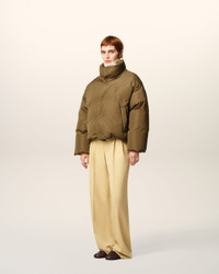 Down jacket in technical taffetas. Front closure with covered press buttons Front and inside pockets with invisible snap buttons Ribbed cuffs Adjustable cord at waist Down and feather filling Ami de Coeur embossed and topstitched logo on chest Water-repellent fabric 61 cm center back length (size S) Made in Madagascar (with love) REF: FJK832.PL0039.298 SIZE & FIT This item is designed to be worn lose. Take your normal size. Model is 178 cm / 5"10 and is wearing a size S. COMPOSITION & CARE GUIDE Main Material : 100% Polyester Main Lining : 100% Polyamide Padding : 90% Duck-Down 10% Feathers Cuffs Rib : 45% Acrylic 45% Wool 10% Elastane Do not wash Chlorine prohibited Do not tumble dry Do not iron Dry clean gentle