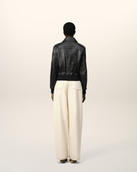 Jacket in smooth lamb leather. Unisex product Ami de Coeur embossed logo on the back under collar 59 cm center back length (size M) 55 cm center back length (size XS) Fully lined Silver metal double zipper with "Ami" and Ami de Coeur engraved pullers Side raglan pockets with invisible snap buttons engraved "Ami Paris" Made in Turkey (with love) REF : UJK038.LH0044.001 SIZE & FIT Fits true to size. Take your normal size. Man model is 1m83 / 6'0" and is wearing a size M. Woman model is 1m78 / 5'10" and is wearing a size XS. COMPOSITION & CARE GUIDE 100% Lamb Leather Do not wash Chlorine prohibited Do not tumble dry Cool iron Dry clean petroleum solvent only on a gentle process