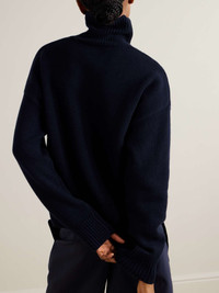 EDITORS'NOTES AMI PARIS' sweater is knitted from a luxe blend of merino wool and cashmere, so you can champion warmth and style at the same time. It's embroidered with the Ami de Coeur logo and has a cozy turtleneck. SIZE & FIT Model measurements: - Fits true to size, take your normal size - Designed for a boxy fit, cut to be worn loose - Mid-weight knit - Model is 180cm/ 5'11" and is wearing a size Small - Bust: 80cm/ 31.5" - Waist: 65cm/ 25.5" - Hip: 89cm/ 35" DETAILS & CARE - Navy merino wool and cashmere-blend - Slips on - 90% Extrafine merino wool, 10% cashmere - Hand wash
