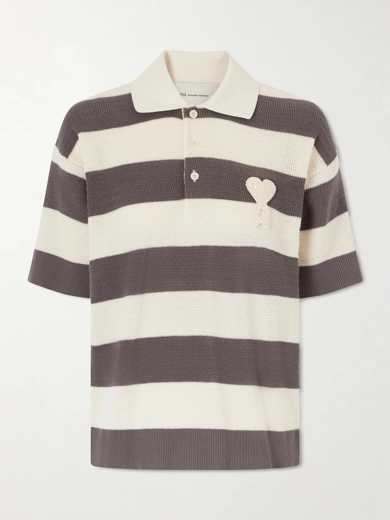 Ami Paris combines classic tailoring with casual Parisian ease in this polo shirt. Knitted from striped cotton, it features a pointed collar, relaxed fit, and the signature ‘Ami de Coeur' logo patch at the chest, offering a timeless silhouette for effortless everyday styling.
