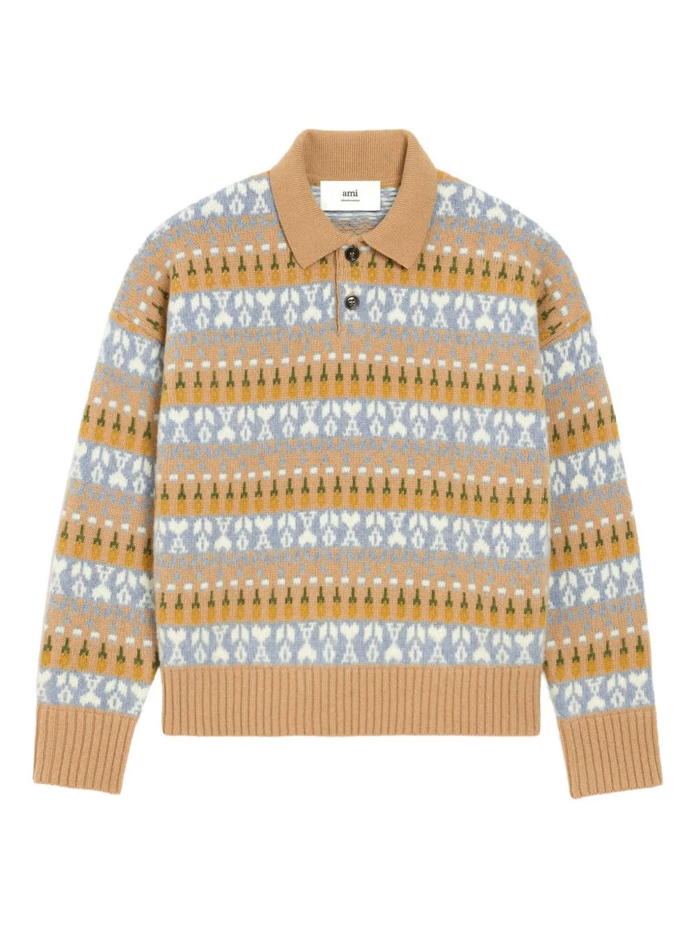 fair isle-knit polo sweater Highlights - Camel beige - Wool blend - Fair isle-knit - Polo collar - Long sleeves - Ribbed trim Made in Italy Composition Wool 80%, Polyamide 20% Washing instructions Hand Wash
