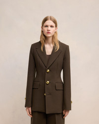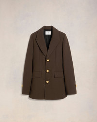 Waisted three buttons jacket in wool crepe. Slim fit 75 cm center back length (size 36) Lined Single breasted Notch collar Flap pockets Slit middle back Bottom sleeves buttoned Domed metal shank buttons with engraved "ami alexandre mattiussi" Made in Romania (with love) REF : FBV612.WV0051.221 SIZE & FIT This item is designed for a close fit. Take the next size up for a semi-fitted cut. Model is 1m78 / 5'10" and is wearing a size 36. COMPOSITION & CARE GUIDE 100% New Wool Do not wash Chlorine prohibited Do not tumble dry Cool iron Dry clean petroleum solvent only on a gentle process