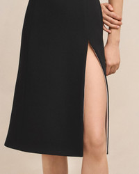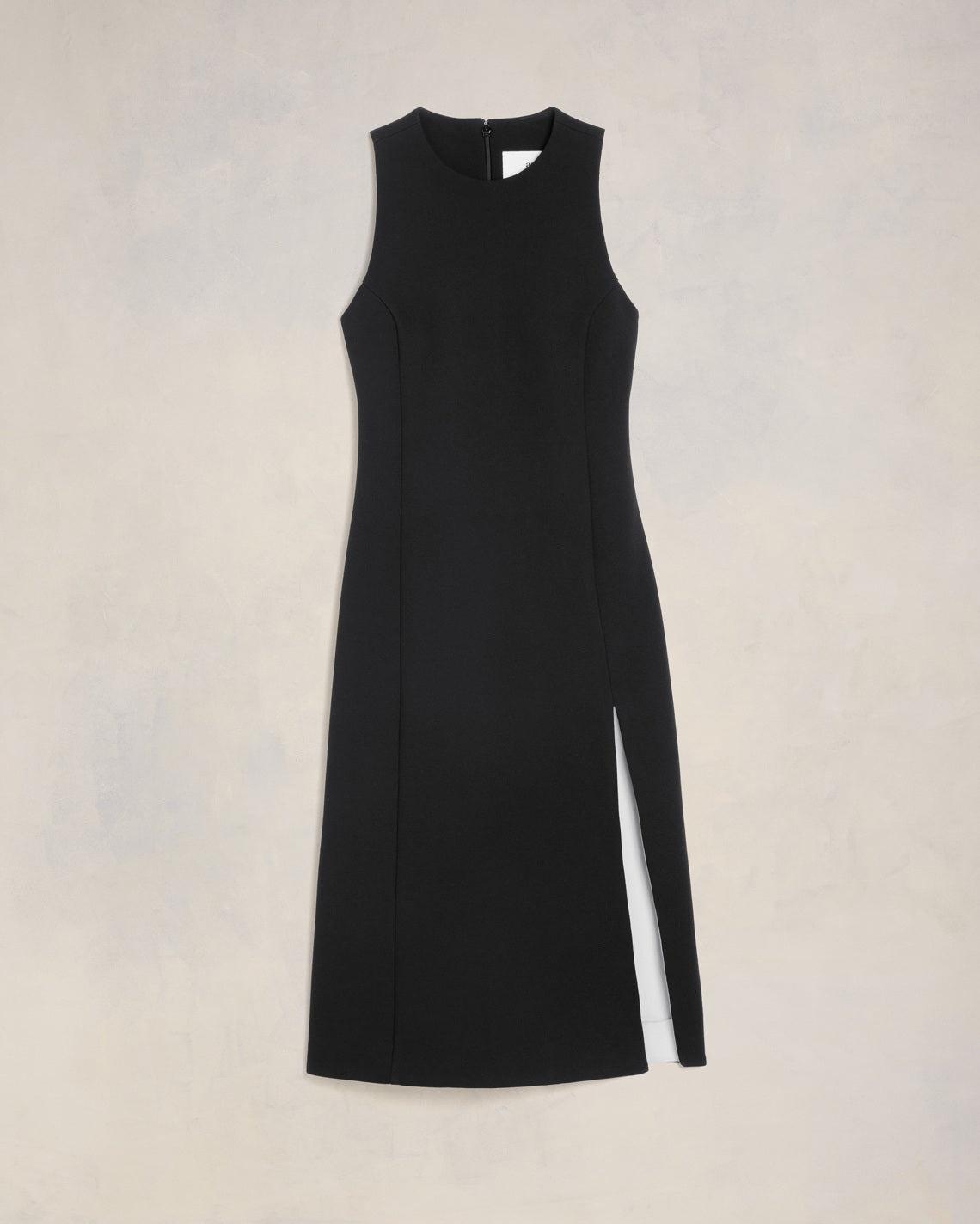 Adjusted slit dress in bicolor bonded wool crepe. 110 cm center back length (size 36) Unlined Invisible zip on the back Bicolor fabric Front slit Made in Romania (with love) REF : FDR215.WV0045.0013 SIZE & FIT This item is designed for a close fit. Take the next size up for a semi-fitted cut. Model is 1m76 / 5'8" and is wearing a size 36. COMPOSITION & CARE GUIDE 50% Polyester, 50% Cotton Do not wash Chlorine prohibited Do not tumble dry Cool iron Dry clean petroleum solvent only on a gentle process