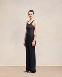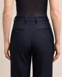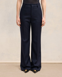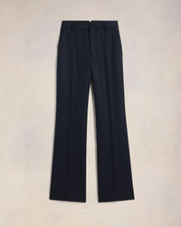 Flare fit trousers in wool gabardine. Flare fit 28 cm bottom leg width (size 36) Front lining to knees Zip fly V detail on the back "ami" logo rocap waistband Buttoned back pockets Horn buttons Made in Romania (with love) REF : FTR435.WV0053.4011 SIZE & FIT Fits true to size. Take your normal size. Model is 1m78 / 5'10" and is wearing a size 36. COMPOSITION & CARE GUIDE 100% New Wool Chlorine prohibited Do not tumble dry Dry clean gentle Cool iron Do not wash
