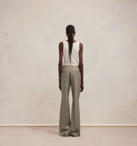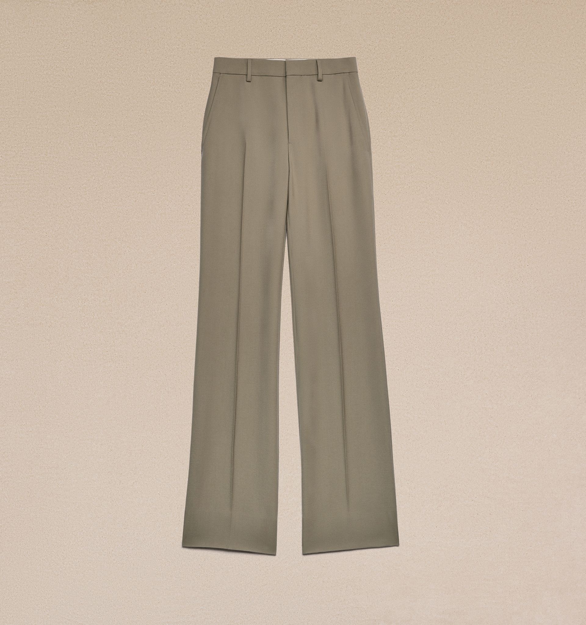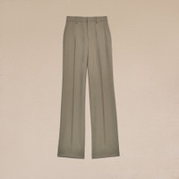 Product Description wool gabardine flared trousers from AMI Paris featuring brown, virgin wool, gabardine weave, high waist, belt loops, hook and zip fly fastening, two side inset pockets, pressed crease, two rear button-fastening jetted pockets, wide leg and extra-long length. Flare fit trousers in wool gabardine. - Flare fit - 28 cm bottom leg width (size 36) - Front lining to knees - Zipped fly - ami logo rocap waistband - Buttoned back pockets - Made in Romania (with love) REF FTR415.WV0026281 Size & Fit Fits true to size. Take your normal size. Model is 1m80 / 5'11" and is wearing a size 36. Materials & Care Instructions 100% New Wool Chlorine prohibited Do not tumble dry Dry clean gentle Cool iron Do not wash Find out more about product traceability.