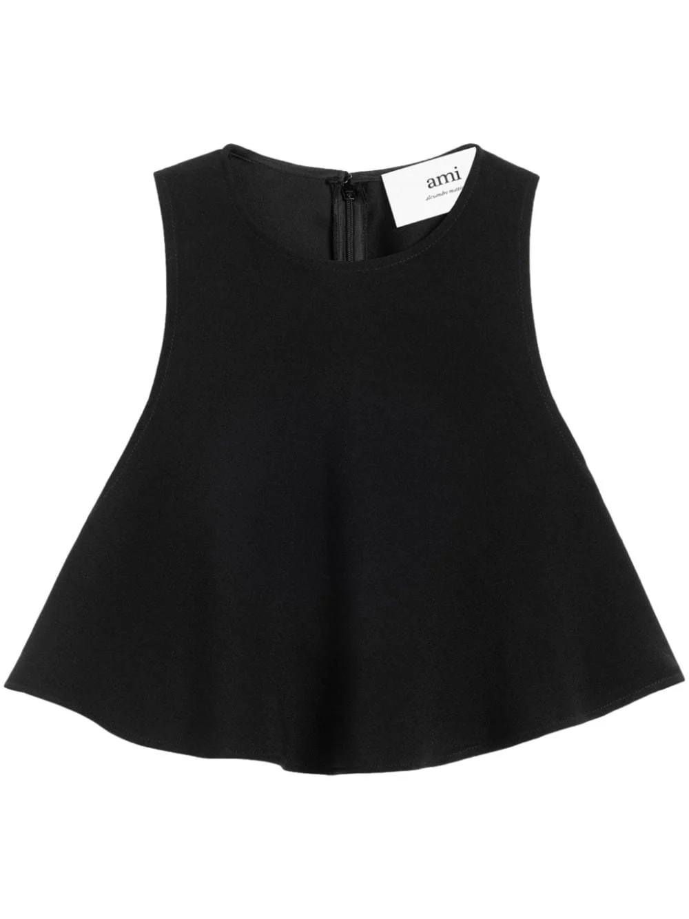 flared cropped blouse Highlights - Black - Crepe texture - Round neck - Rear zip fastening - Sleeveless - Flared design - Cropped Imported Composition Acetate 73%, Viscose 27% Washing instructions Read Manufacturer Guidelines