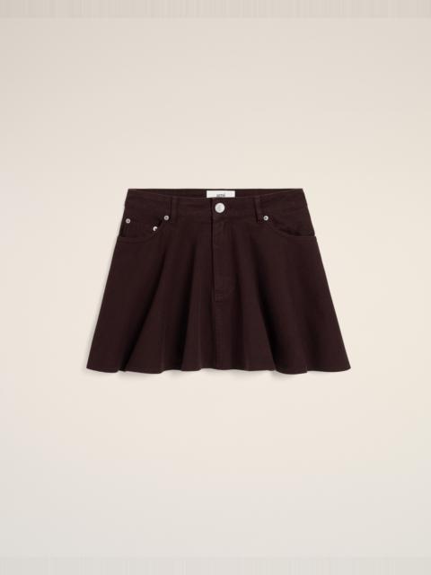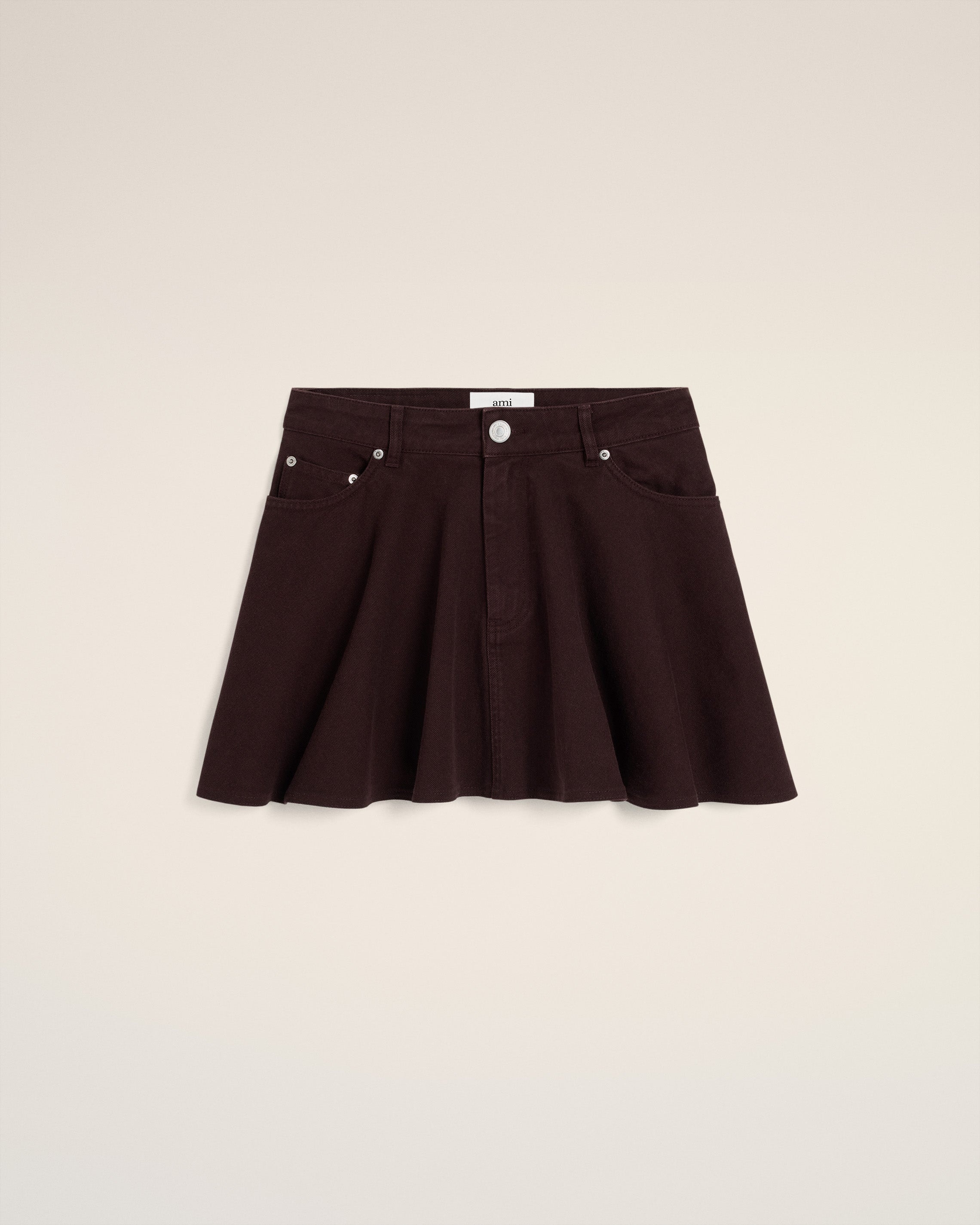 Mini skirt with godets in colored cotton twill. 35 cm middle back length (size 36) Low-rise Zipped fly Denim metal rivets and buttons in nickel color "ami alexandre mattiussi" patch on the back Tonal topstitches Made in Portugal (with love) SIZE & FIT Fits true to size. Take your normal size. COMPOSITION & CARE GUIDE 100% Cotton Machine wash at 30°C Chlorine prohibited Do not tumble dry Cool iron Dry clean possible Wash inside out Wash with similar colours