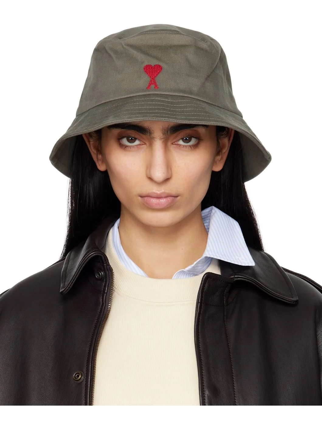 Gray Cotton Ami de Coeur Embroidery Bucket Hat