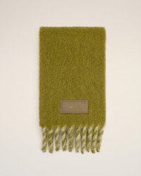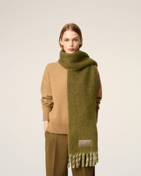 Bicolor scarf in alpaca, mohair, wool and polyamide blend. Tonal jacquard label Size without the fringes: 24 x 240 cm Length of the fringes: 11cm each side Made in Italy (with love) REF: USF676.AW0009.2983 SIZE & FIT Size without the fringes: 24 x 240 cm Length of fringes: 11cm each side COMPOSITION & CARE GUIDE Main Material : 28% Alpaca 28% Mohair 24% New Wool 20% Polyamide Do not wash Chlorine prohibited Do not tumble dry Cool iron Dry clean petroleum solvent only on a gentle process
