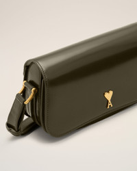 Shoulder Paris Paris bag in glazed leather. Unisex product Shoulder carry Magnetic flap closure Metal hardware in vibrated brass color One main compartment with one front compartment and one patched pocket Ami de Coeur stud Suede lining Adjustable leather strap, shortest drop of 21.5 cm, longest drop of 28.5 cm Size: 21x11x6 cm Made in Morocco (with love) REF: ULL719.AL0139.A037 SIZE & FIT Dimensions : 21x11x6 cm COMPOSITION & CARE GUIDE Main Material : 100% Cow Leather Main Lining : 100% Lamb Leather Our leathergoods are made from delicate materials. To keep the original aspect of the leather as long as possible, please avoid contact with abrasive and oily substances. Make sure not to expose them at the direct light for too long and to wipe them with a soft and dry cloth when wet. To avoid deformations, insure to not overload them. Keep them in their dust bag and safe from humidity