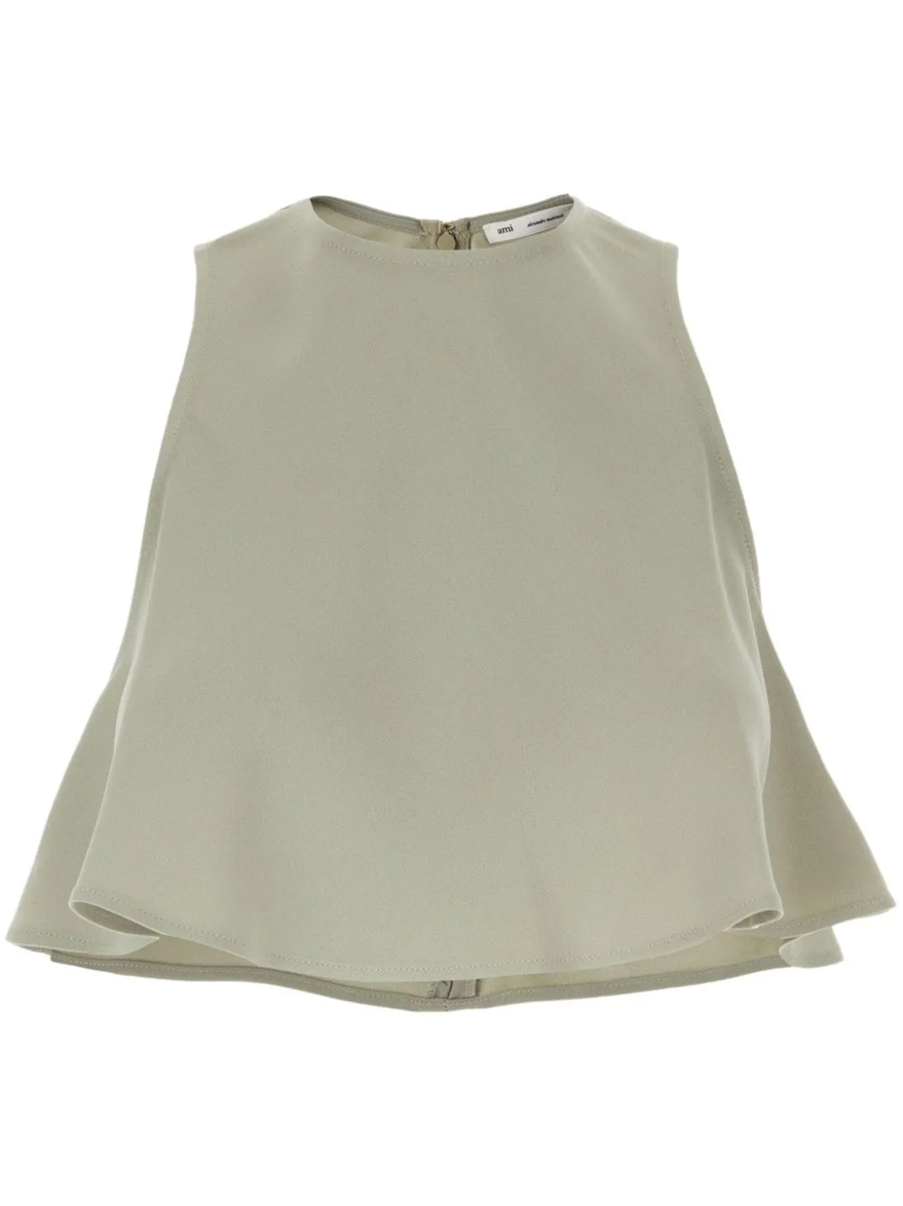 crepe cropped top Highlights - Sage green - Crepe texture - Concealed rear zip fastening - Crew neck - Sleeveless - Flared hem - Cropped Imported Composition Acetate 73%, Viscose 27%