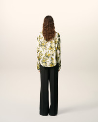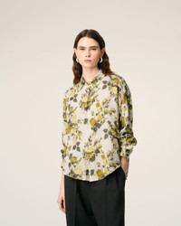 Flower printed viscose shirt. Unisex product Boxy fit Flower printed Classic collar Buttoned placket on the front and cuffs Mother of pearl buttons Tonal italic "ami" embroidery on bottom left waist Center back length : 70.5cm (size XS) Center back length : 72cm (size M) Made in Portugal (with love) REF: USH767.VI0037.3992 SIZE & FIT This style is unisex. For man, take your normal size. For woman, take one size down than your usual size. Man model is 187 cm / 6"2 and is wearing a size M. Woman model is 181 cm / 5"11 and is wearing a size S. COMPOSITION & CARE GUIDE Main Material : 100% Viscose Chlorine prohibited Do not tumble dry Cool iron Dry clean gentle Do not wash