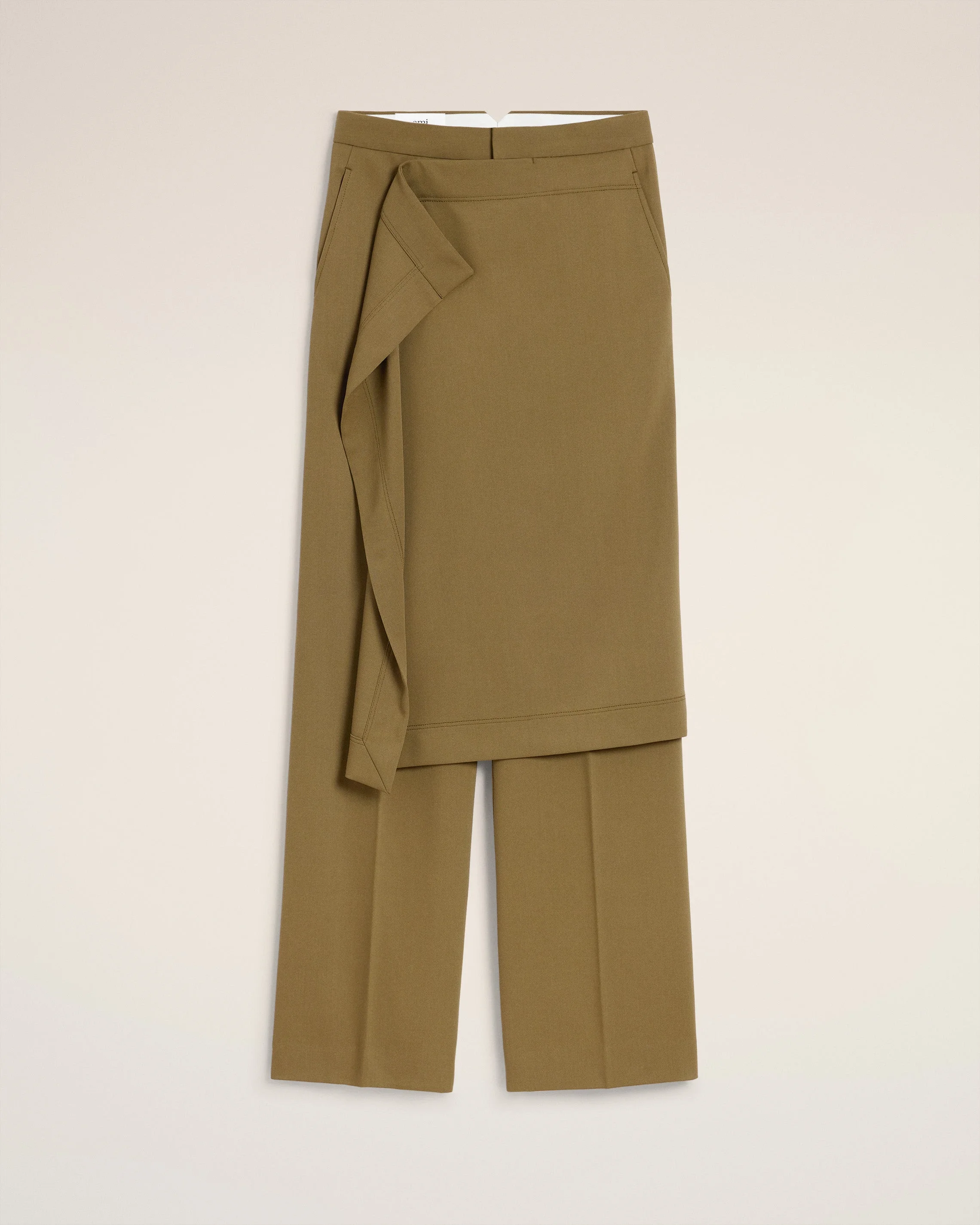 Large fit trousers with panel in wool tricotine. Wide fit Zipped front fly Horn buttons Back welt pockets with buttons Front panel with covered press button closure system "ami" waistband V cut detail on the back belt Front lining to knees 23 cm bottom leg width (size 36) Made in Romania (with love) REF: FTR809.WV0067.298 SIZE & FIT This item is designed to be worn lose. Take your normal size. Model is 177 cm / 5"9 and is wearing a size 36. COMPOSITION & CARE GUIDE Main Material : 100% New Wool Main Lining : 50% Polyester 50% Cotton Pocket Lining : 100% Cotton Do not wash Chlorine prohibited Do not tumble dry Cool iron Dry clean petroleum solvent only on a gentle process