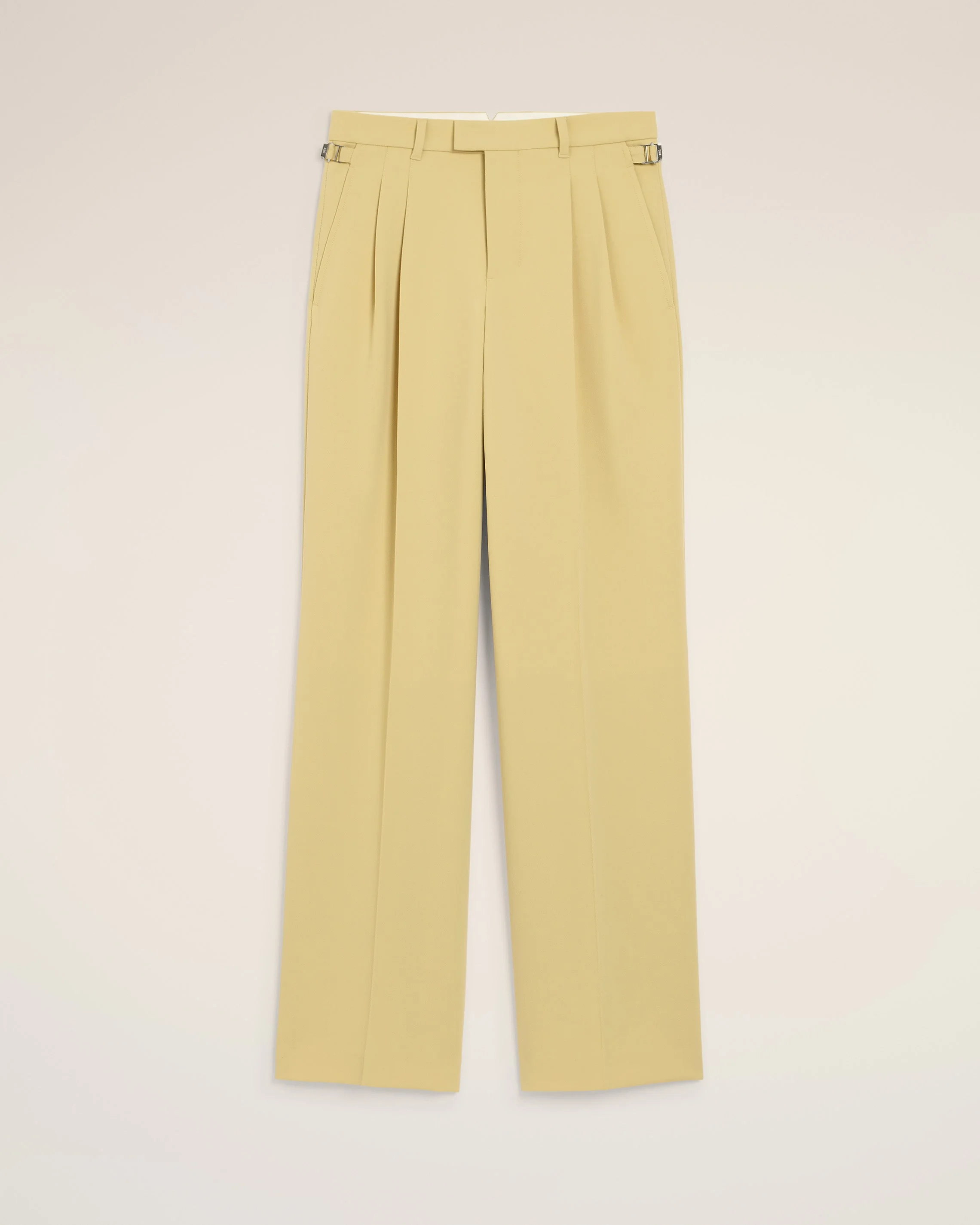 Low waist large trousers in wool tricotine. Wide fit Low waist Zipped fly Horn buttons Buttoned back pockets "ami" waistband 2 adjustable tabs on side with metal buckle engraved "ami" Front pleats V detail on the back Front lining to knees 29 cm bottom leg width (size 36) Made in Romania (with love) REF: FTR812.WV0067.399 SIZE & FIT This item is designed to be worn lose. Take your normal size. Model is 178 cm / 5"10 and is wearing a size 36. COMPOSITION & CARE GUIDE Main Material : 100% New Wool Main Lining : 100% Polyester Pocket Lining : 65% Polyester 35% Cotton Do not wash Chlorine prohibited Do not tumble dry Cool iron Dry clean gentle