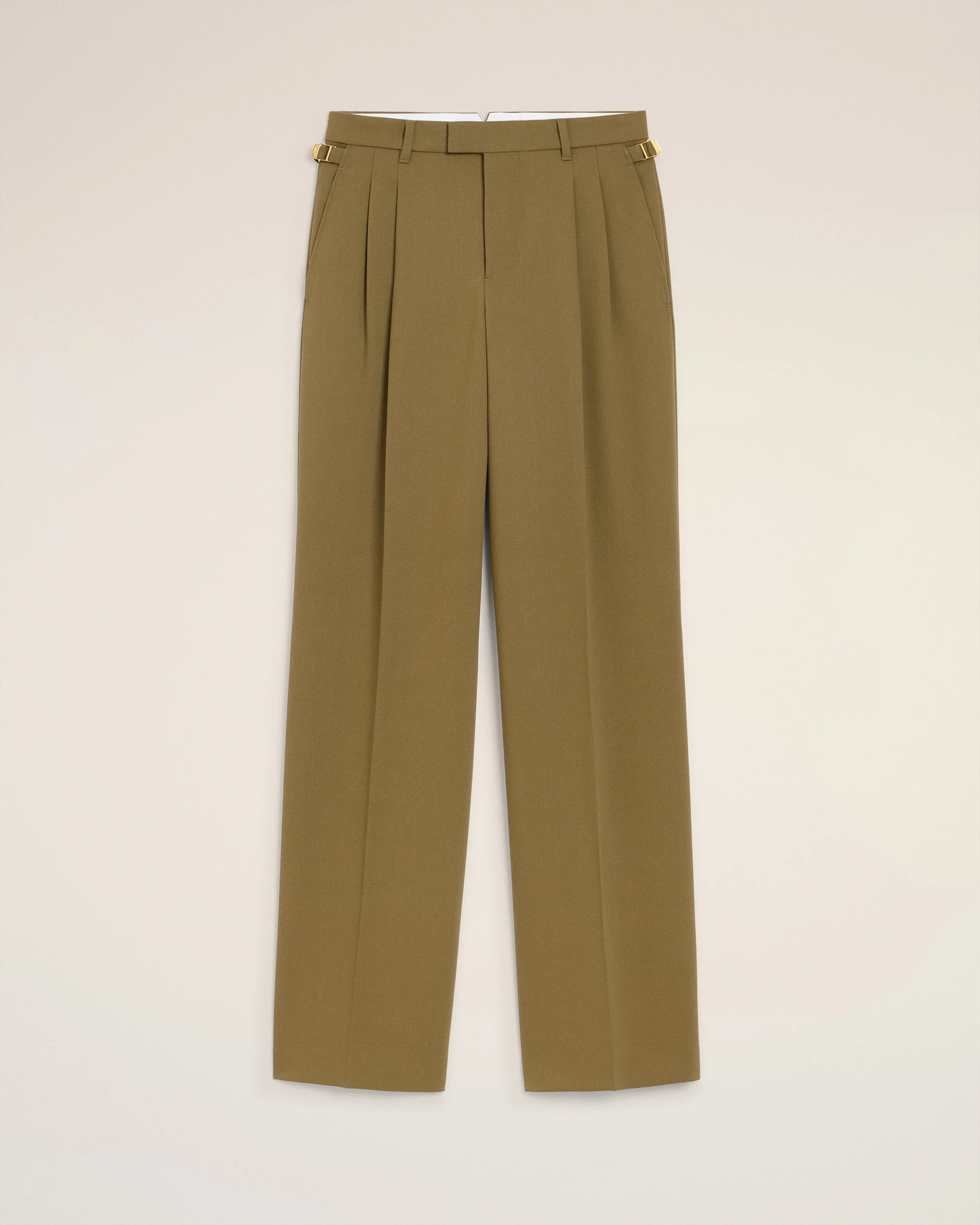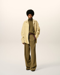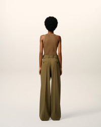 GREEN WOOL TABS WIDE TROUSERS