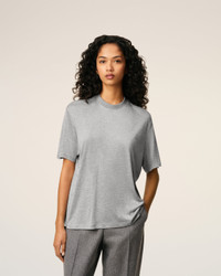T-shirt in mercerized cotton and silk jersey. Unisex product Boxy fit Tonal italic "ami" chest embroidery Tonal "ami" embroidery under back neckline 65,5cm center back length (size XS) 70,5cm center back length (size M) Made in Portugal (with love) REF: UTS333.JE0124.055 SIZE & FIT This style is unisex. For man, take your normal size. For woman, take one size down than your usual size. Man model is 182,5 cm / 5"11 and is wearing a size M. Woman model is 177 cm / 5"9 and is wearing a size XS. COMPOSITION & CARE GUIDE Main Material : 88% Viscose 12% Silk Chlorine prohibited Do not wash Do not tumble dry Cool iron Dry clean possible