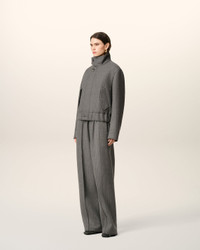 Harrington jacket in double wool herringbone pattern. Unisex product Herringbone pattern High collar with horn buttons with metal eyelets Nickel double metal zipper with "ami" engraved puller Adjustable cuffs with horn buttons with metal eyelets Side flap pockets, and internal pocket with invisible snap buttons Elasticated waist "ami alexandre mattiussi" leather label on the back Fully lined and padded 62 cm center back length (size XS) 64 cm center back length (size M) Made in Romania (with love) REF: UJK822.WV0080.0711 SIZE & FIT This style is unisex. For man, take your normal size. For woman, take one size down than your usual size. Man model is 183 cm / 6"0 and is wearing a size M. Woman model is 181 cm / 5"11 and is wearing a size XS. COMPOSITION & CARE GUIDE Main Material : 74% New Wool 15% Polyamide 7% Wool 3% Silk 1% Polyester Padding : 100% Polyethylene Main Lining : 50% Polyester 50% Cotton Pocket Lining : 100% Cotton Do not wash Chlorine prohibited Do not tumble dry Cool iron Dry clean gentle