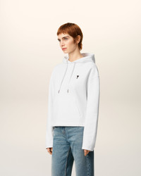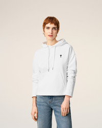 WHITE COTTON CONTRASTED AMI DE COEUR HOODIE