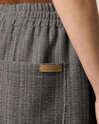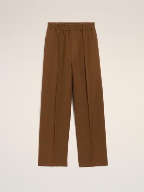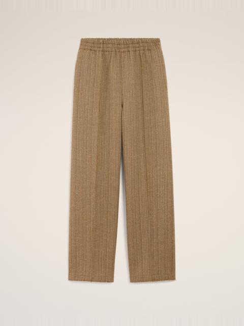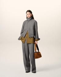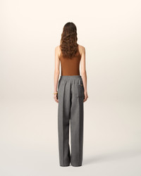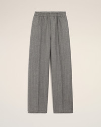 Elasticated trousers in double wool herringbone pattern. Wide fit Herringbone pattern Elasticated waist Large leg "ami alexandre mattiussi" leather label on the back pocket Water repellent fabric Lined until the knees 27 cm bottom leg width (size M) Made in Romania (with love) REF: UTR815.WV0080.0711 SIZE & FIT This style is unisex. For man, take your normal size. For woman, take one size down than your usual size. Man model is 183 cm / 6"0 and is wearing a size M. Woman model is 181 cm / 5"11 and is wearing a size XS. COMPOSITION & CARE GUIDE Main Material : 74% New Wool 15% Polyamide 7% Wool 3% Silk 1% Polyester Main Lining : 60% Acetate 40% Cupro Pocket Lining : 100% Cotton Do not wash Chlorine prohibited Do not tumble dry Cool iron Dry clean gentle