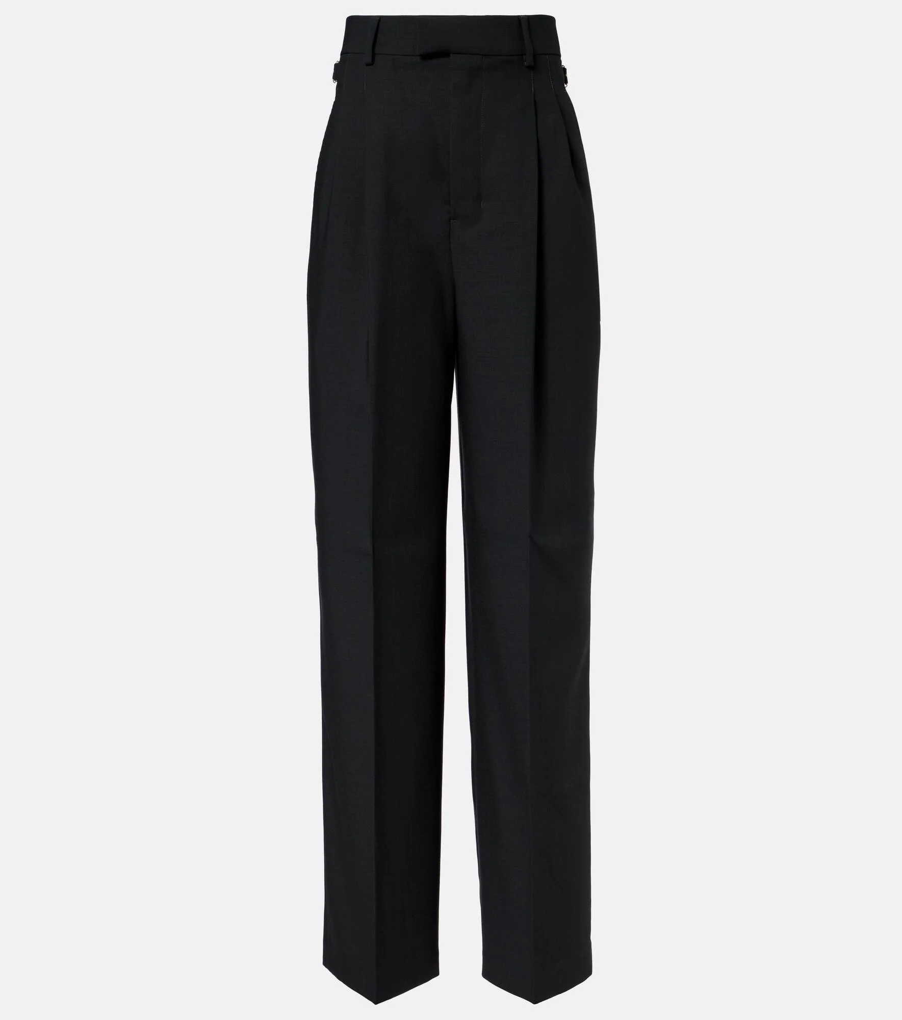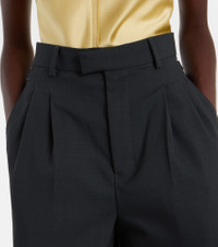 Ami Paris' Parisian nonchalance is the key ingredient for authentic and cool style. Crafted from virgin wool twill, these timeless high-rise pants feature side slit and back pockets, along with classic zip-hook and button fastening. Product Details - Material: 100% virgin wool - Care instructions: dry clean - Made in Romania - Designer color name: Anthracite - Item color: gray - Lining: 100% polyester - Pocket lining: 65% polyester, 35% cotton - Closure: zipper fly, button and hook fastenings - Pockets: side slit pockets, back pockets - Adjustable tabs at the waist - Item number: P01073972 Size & Fit - True to size - Non-stretchy fabric - Wide-leg - The model seen in the picture is 178cm-5'10" and wearing a size FR 36