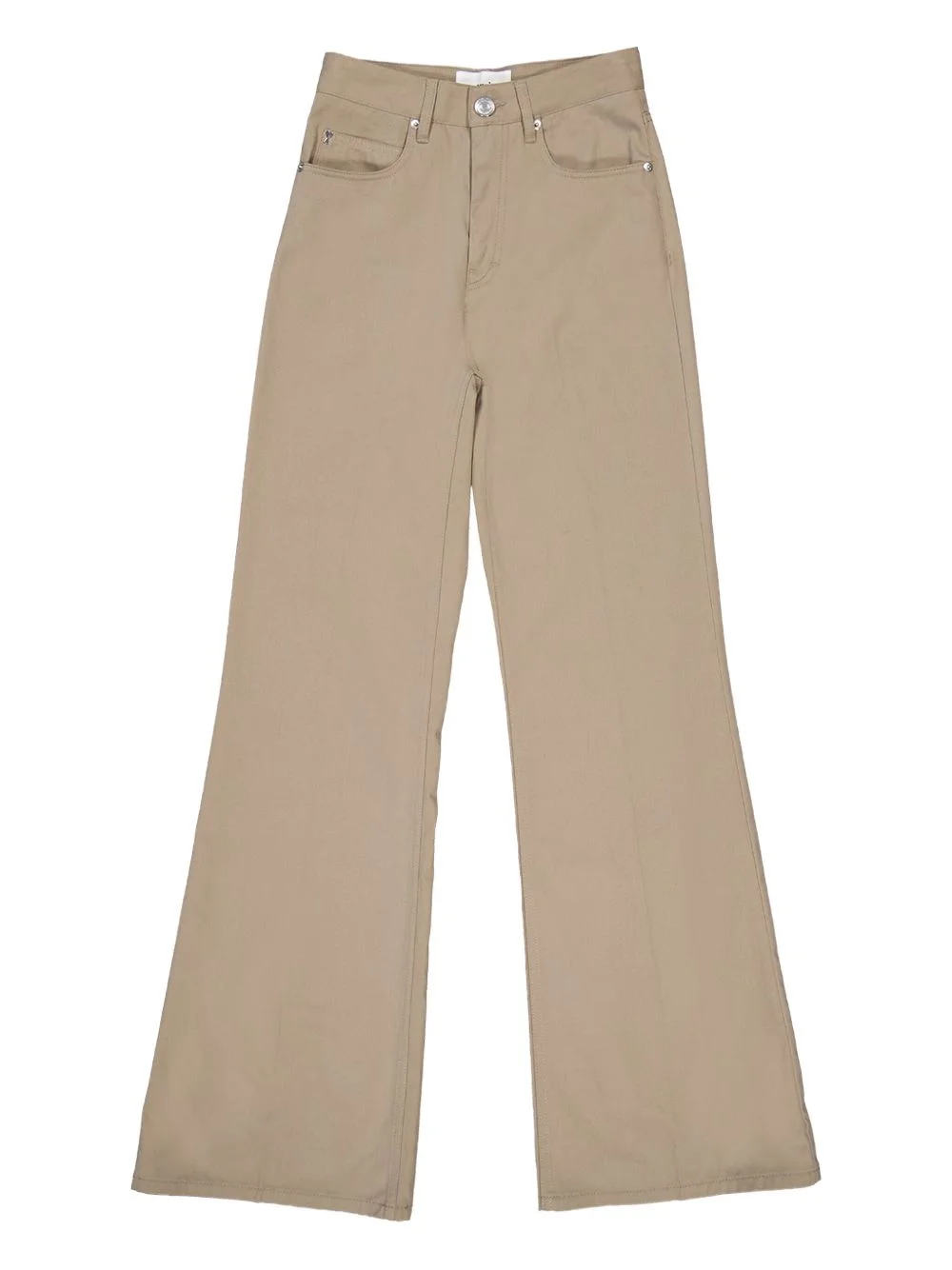 high-waist flared trousers Highlights - Almond beige - Cotton - Logo patch to the rear - Concealed fly and button fastening - Classic five pockets - Belt loops - High-waisted - Flared - Straight hem Imported Composition Cotton 100% Washing instructions Read Manufacturer Guidelines
