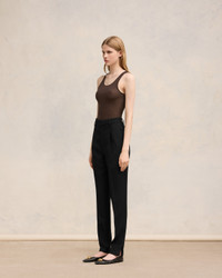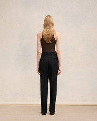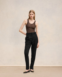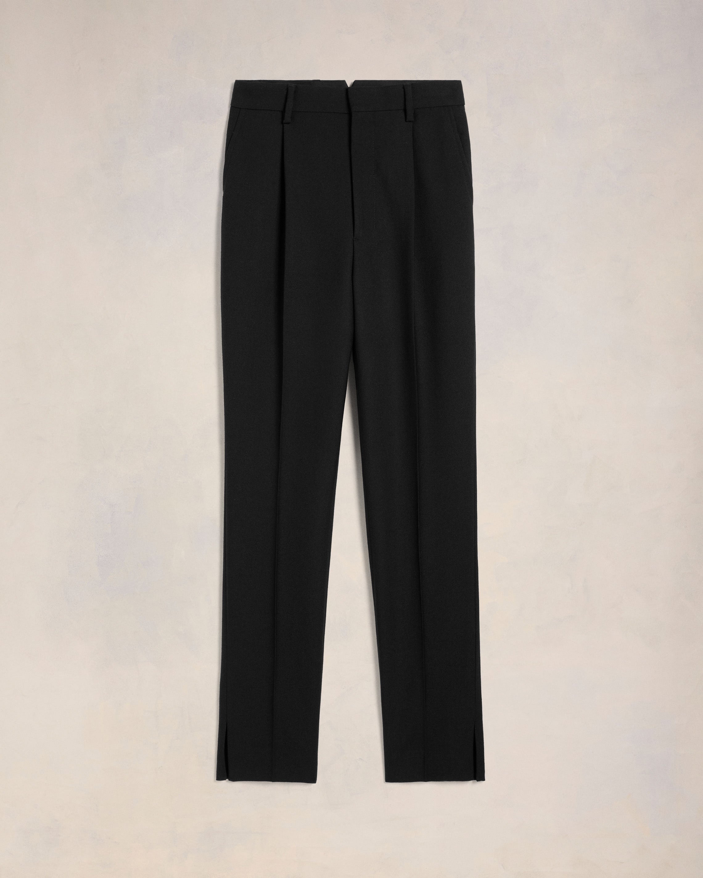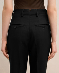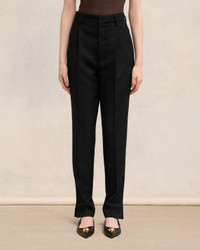 High waist cigarette trousers in soft wool gabardine. Cigarette fit 16 cm bottom leg width (size 36) High waist Front lining to knees Zip fly V detail on the back "ami" rocap waistband Bottom slits Buttoned back pockets Horn buttons Made in Moldova (with love) REF : FTR112.WV0026.001 SIZE & FIT This item is designed for a close fit. Take the next size up for a semi-fitted cut. Model is 1m78 / 5'10" and is wearing a size 36. COMPOSITION & CARE GUIDE 100% New Wool Do not wash Chlorine prohibited Do not tumble dry Cool iron Dry clean petroleum solvent only on a gentle process