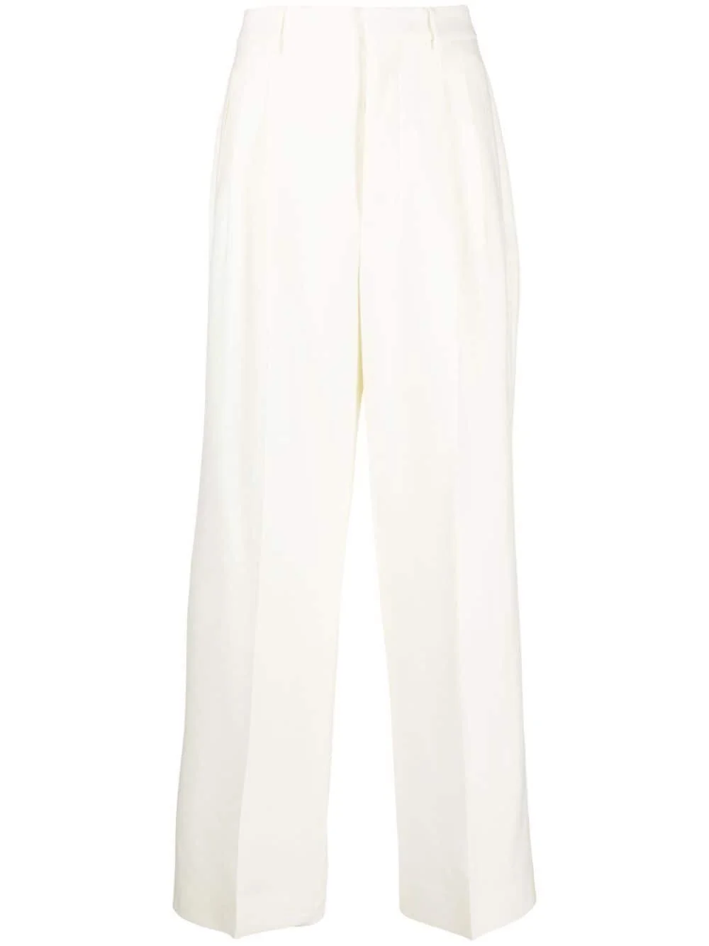 high-waisted flared trousers Highlights - Ivory white - Virgin wool - Box-pleat detail - High waist - Flared - Concealed front fastening - Belt loops - Two rear button-fastening pockets Imported Composition Outer: Virgin Wool 100% Lining: Polyester 65%, Cotton 35%