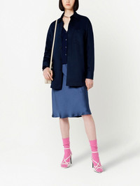 high-waisted satin skirt AMI Paris' affinity for easy, pared-back dressing is captured in this blue satin skirt. Riffing on a classic silhouette, it's finished with soft pleating that nods to the brand's penchant for elevated simplicity. Highlights - Blue - Silk blend - Satin finish - Pleat detailing - High waist - Elasticated waistband - Slight flare Imported Composition Acetate 63%, Silk 37% Washing instructions Dry Clean Only