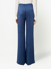 high-waisted satin trousers AMI Paris' affinity for easy, pared-back dressing is captured in the softly tailored silhouette of these blue wide-leg trousers. A pull-on design, they're decorated with tonal stitching, nodding to the brand's penchant for elevated simplicity. Highlights - Blue - Silk blend - Satin finish - High waist - Elasticated waistband - Two side inset pockets - Wide leg - Long length Imported Composition Acetate 63%, Silk 37% Washing instructions Dry Clean Only