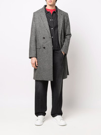 houndstooth pattern double-breasted coat Inspired by Paris, where the brand was created, AMI Paris captures a relaxed yet elegant style. Featuring traditional tailoring details on this double-breasted coat, creative elements such as its houndstooth highlights an element of the brand's sense of classic playfulness. Highlights - Grey/black - Wool - Notched lapels - Chest welt pocket - Off-centre front button fastening - Two side flap pockets - Central rear vent - Shoulder pads - Faux-button cuffs - When buying this unisex item, keep in mind that it is graded in standard men's sizing. Imported Composition Wool 100% SIZE & FIT Model measurements Height 5 ft 10 in(1.78 m) Bust/Chest 33.46 in(85 cm) Hips 36.22 in(92 cm) Waist 23.22 in(59 cm) FittingInformation This piece is unisex. Please take care when selecting your size Designed for a loose fit for men and an oversized fit for women Made with a mid-weight fabric Washing instructions Dry Clean Only