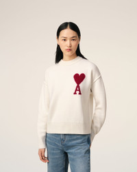 Sweater in felted merino wool. Unisex product Jersey stitch Intarsia knitted red Ami de Coeur on the chest Inside out seams 62 cm center back length (size M) 56 cm center back length (size XS) Made in Portugal (with love) REF : BFUKS006.018.154 SIZE & FIT This style is unisex. For man, take your normal size. For woman, take one size down than your usual size. Man model is 1m87 / 6'2" and is wearing a size M. Woman model is 1m78 / 5'10" and is wearing a size XS. COMPOSITION & CARE GUIDE 100% Wool Hand wash low temperature Chlorine prohibited Do not tumble dry Dry flat Cool iron Dry clean possible